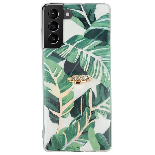 Green Leaves Ring Holder Case Samsung S22